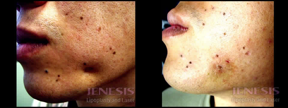 The Lumenis Ultrapulse laser is capable of three treatments: Active FX, Deep FX, and Total FX (a combination of both Active FX and Deep FX). The Active FX treatment safely and precisely removes skin to a pre-determined depth, while the Deep FX treatment breaks up collagen within the scars. As the collagen remodels over the ensuing weeks, the skin is smoothed and the scars build up to the level of healthy skin. Because acne scars often have deep skin indentations, multiple treatments are often necessary. Most patients notice significant improvement after 3 to 4 Total FX treatments.